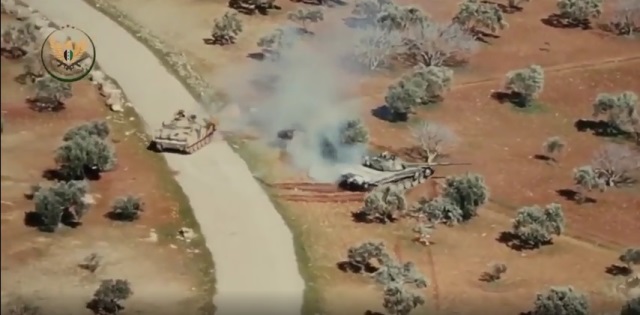 El encuentro entre un carro de combate T-72 sirio y un vehículo de combate de infantería ACV-15, probablemente operado por el HTS (Hayat Tahrir al-Sham, el brazo sirio de Al-Qaida) fue captado por una aeronave no tripulada.