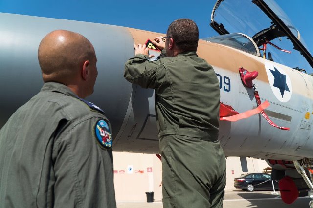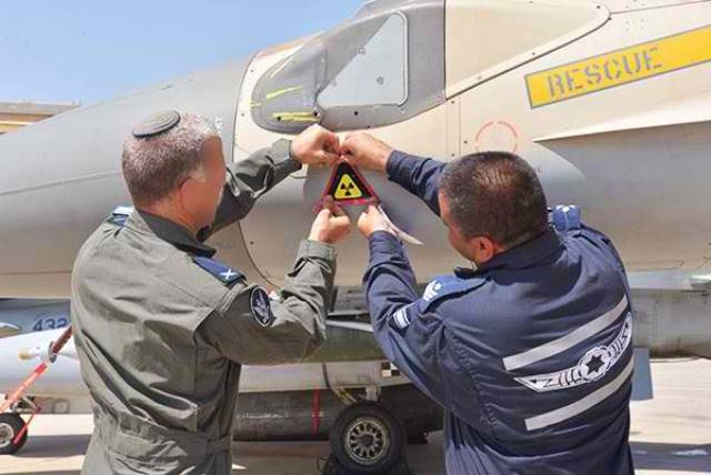 ·Personal de la IDF coloca la marca en un F-16I. Foto: IDF.