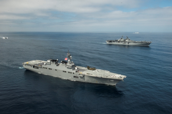 El crucero portahelicópteros japonés Hyuga durante maniobras conjuntas con la US Navy (US Navy)
