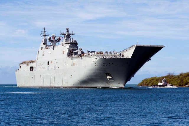 Fotografía: El HMAS Canberra entrando en Pearl Harbour. foto Navantia.