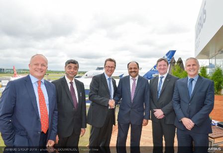Foto: Directivos de Airbus Helicopters y de Mahindra Aerospace tras la firma del acuerdo en el salón de Farnborough (foto Alexandre Doumenjou/Airbus Group).