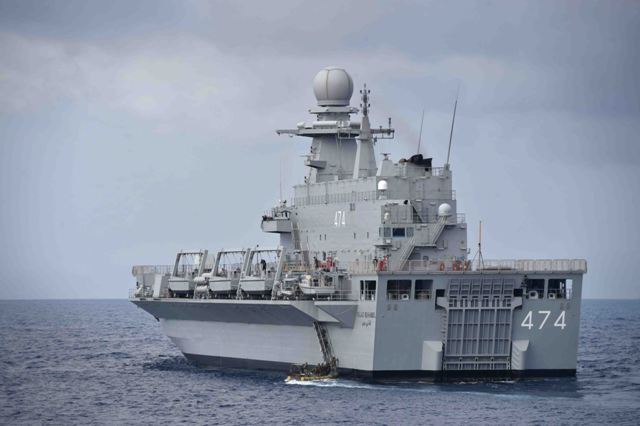 Entre los múltiples buques que participan en el ejercicio aeronaval Phoenix Express 2016, patrocinado por el US Africa Command (AFRICOM), destaca el nuevo navío anfibio de la Marina Militar de Argelia, Kalaat Beni-Abbes, que luce en su casco el numeral 474. El Kalaat Beni-Abbes es el mayor navío de la flota de Argelia, se trata de un Landing Platform/Dock (LPD), aunque los argelinos lo denominan Bâtiment de Débarquement et de Soutien Logistique (BDSL), que tiene 9.000 toneladas de desplazamiento y 143 metros de eslora (largo). Fue construido en Italia, basado en el diseño de los navíos italianos de la clase San Giorgio, y entregado al país norteafricano en marzo de 2015.