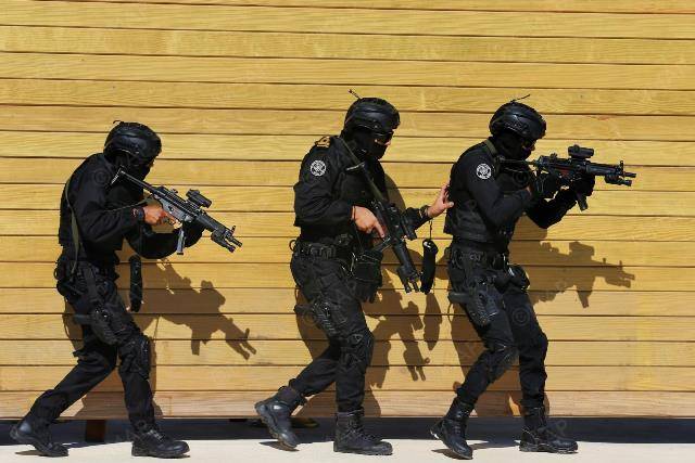 Con motivo de la inauguración del centro de entrenamiento, una unidad de comandos de las fuerzas especiales de la Real Marina de Marruecos realizó un entrenamiento para intervenir con el fin de inspeccionar contenedores sospechosos, utilizando técnicas de descenso rápido, a través de la técnica fast rope, así como el método de descenso con la técnica de rapel, que permiten a las fuerzas especiales acceder en helicópteros a lugares que no cuentan con helipuerto, o que requieren una rápida intervención. (Alex Ribeiro)