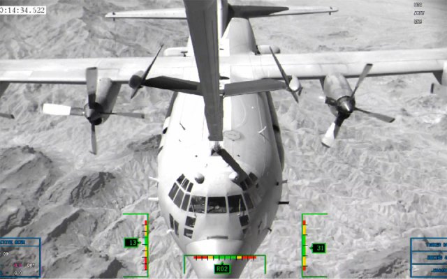 Un Hércules siendo reabastecido desde un KC-46 (Boeing)