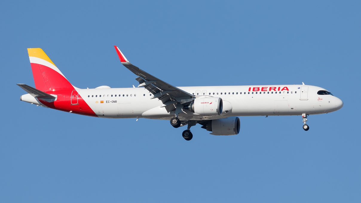 Imagen de uno de los Airbus A321XLR, que emplea Iberia en vuelos intercontinentales. (foto Javier Sánchez)
