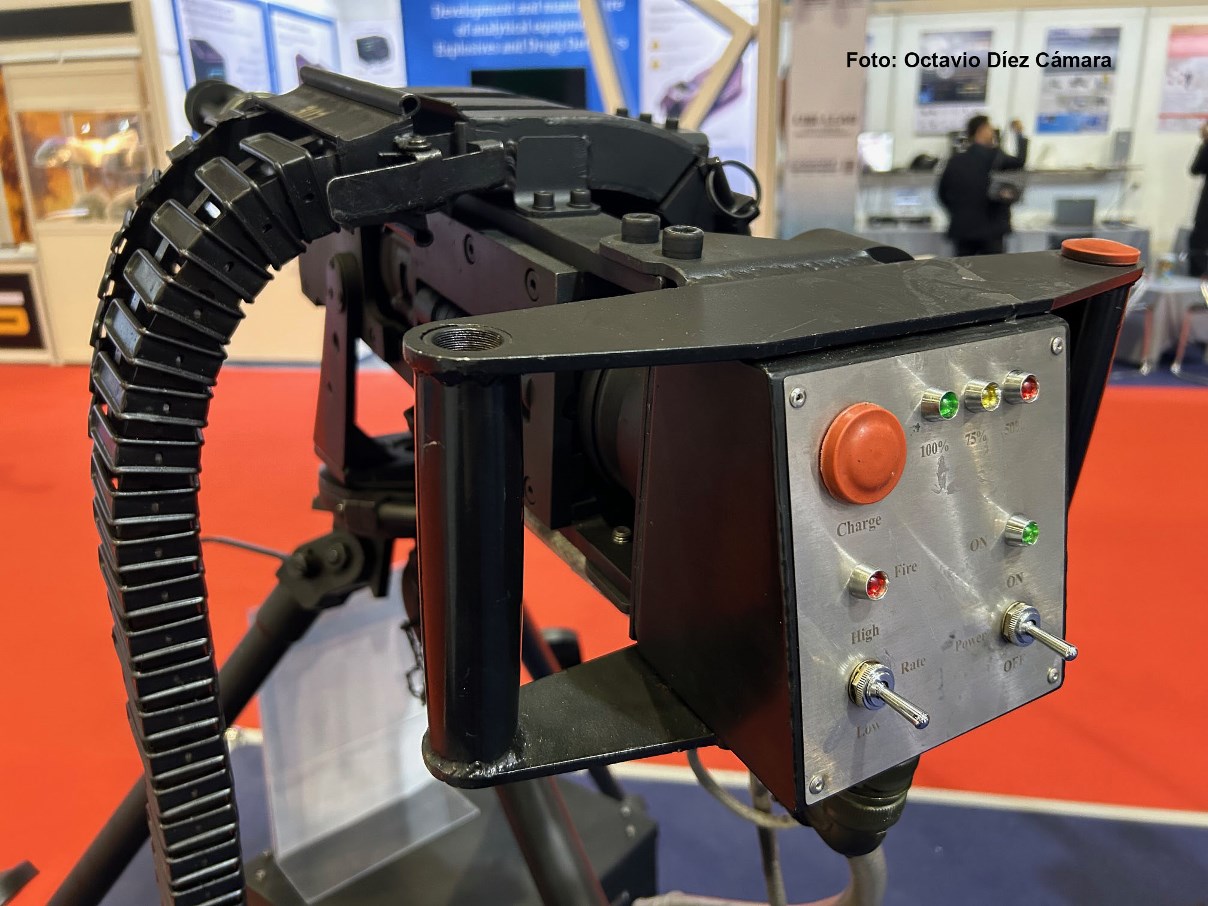 Curiosamente, esta ametralladora multitubo incluye una caja trasera de control que parece no especialmente elaborada y que comprende algunas palancas de activación y luces que presentan información de forma clara a quien la maneja. En la parte intermedia del trípode se observa una caja con algunos elementos de control y en la parte inferior las baterías que generan la energía para que el arma sea completamente autónoma.