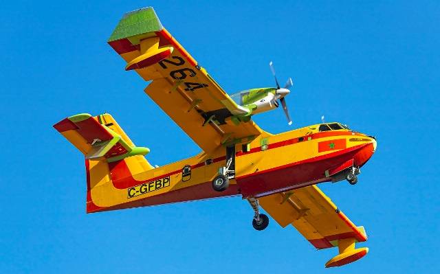 El primero de los 3 CL-415EAF "Canadair", que Marruecos adquirió este año, realizó vuelos de prueba con vistas a su entrega en 2022. Los tres aviones bajo contrato con Marruecos proceden del stock, mejorados de la versión CL-215 al estándar CL-415EAF, de la empresa canadiense Viking Air Ltd.