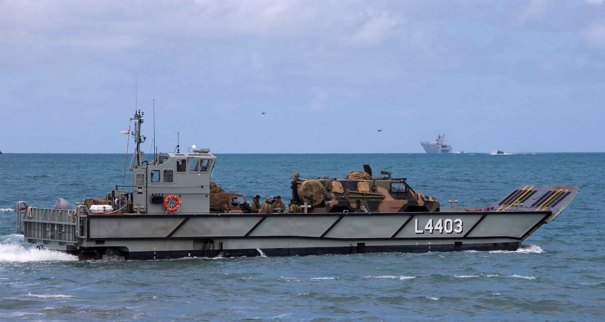 Foto: Una de las LLC de la RAN transportando un vehículo blindado Bushmaster durante los recientes ejercicios anfibios “Sea Raider”. (Foto: Ministerio de Defensa de Australia)