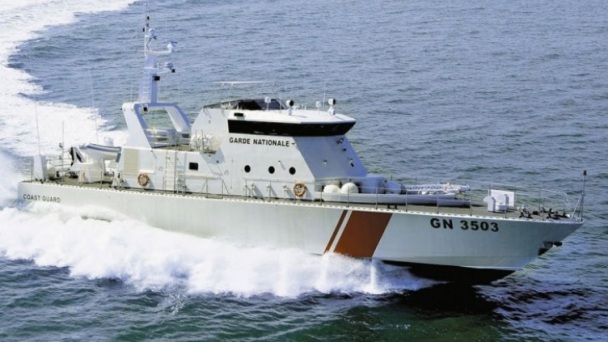 Fotografía: Una de las nuevas patrulleras guarda costas de 35 metros de eslora de la “Garde Nationale” de Túnez, durante sus pruebas de mar en Italia. (Foto: Vittoria di Adria)