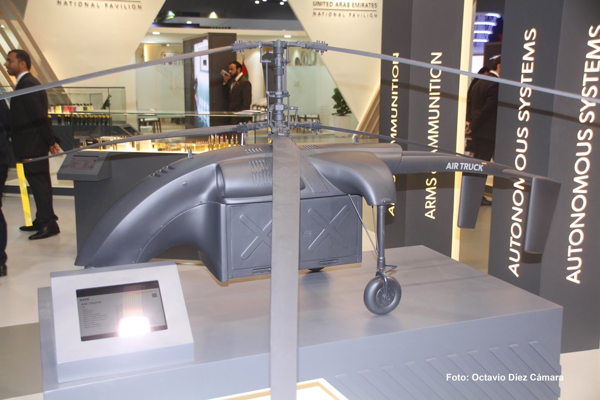Emiratos Árabes Unidos también trabaja en un concepto mayor de UAS de transporte. Lo designan como Air Truck -camión aéreo- y en el encontramos un diseño que también emularía al de un helicóptero, en este caso uno con doble rotor de hélices contrarotatorias como los rusos Kamov.