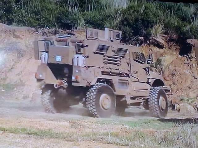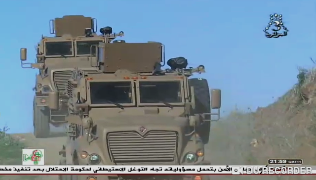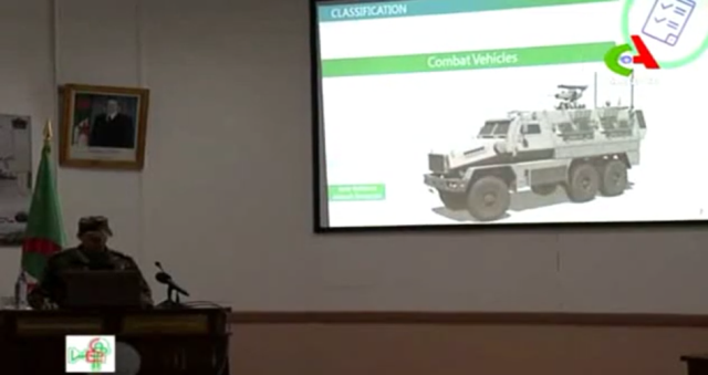 Una imagen publicada por el Ministerio de Defensa Nacional de Argelia durante un ejercicio de fuego realizado por el Regimiento de Maniobra Operacional 116, uno de los Regimientos de Fuerzas Especiales de Argelia, muestra al MRAP MaxxPro por vez primera en acción en ejercicios de tiro reales.