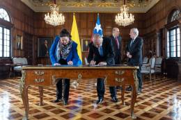 El ministro de Relaciones Exteriores de Chile, Alberto van Klaveren, y la ministra de Defensa, Maya Fernández, encabezaron en Bogotá junto a sus pares de Colombia, Álvaro Leyva e Iván Velásquez, la segunda reunión del Mecanismo de Coordinación y Consultas Políticas 2+2.