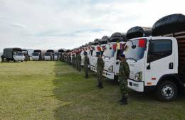 El ministro del Interior de Colombia, Daniel Palacios Martínez, hizo entrega al Ejército de 25 camiones en el marco de la celebración de los 202 años de la Batalla de Boyacá, llevada a cabo el 7 de agosto de 1819 y reconocida como la confrontación militar mas importante entre el Ejercito de...