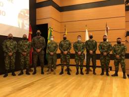 Oficiales brasileños que forman parte del Grupo Asesor Técnico Interamericano en Colombia (GATI-CO), el Mayor de Ingeniería del Ejército Cláudio Santos Bispo y el Capitán-Teniente (Fusilero Naval) de la Armada Gustavo Lopes da Silva Freitas, realizaron la ceremonia de clausura del Curso de...