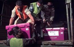 Arribadas las vacunas a Uruguay, unos 500 efectivos de las dos fuerzas, 7-8 aeronaves de la Fuerza Aérea y 70 vehículos del Ejército participaron en esta primera instancia de distribución, la cual se reiterará ante la llegada de nuevos envío en las semanas próximas. Así se llegó en tiempo y forma...