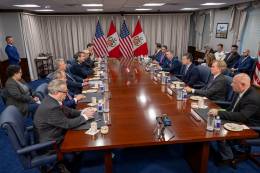 El Ministro de Defensa del Perú, Walter Astudillo, y el Canciller Elmer Schialer se reunieron en el Pentágono con el Secretario de Defensa de los Estados Unidos, Pete Hegseth, quien manifestó estar “agradecido por la alianza con el Perú para promover la paz mediante la fortaleza y enfrentar juntos...