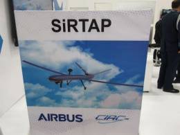 El stand de la multinacional Airbus mostraba una imagen de gran tamaño de la aeronave no tripulada del programa SITARP, fruto del trabajo de AIRBUS y la compañía Corporación de la Industria Aeronáutica Colombiana CIAC.