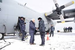 Sebastián Piñera, junto al Ministro de Defensa Nacional, Alberto Espina Otero, el Comandante en Jefe de la Fuerza Aérea de Chile, General del Aire Arturo Merino Núñez, entre otras autoridades, se trasladó en una aeronave C-130 Hércules al territorio antártico donde anunció el Plan de Modernización...