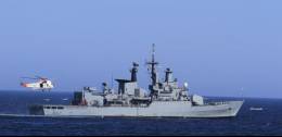 Tripulantes de la fragata chilena Tipo 23 Almirante Cochrane, junto al destructor USS Shoup de la clase Arleigh Burke y a la fragata de la Armada de India INS Satpura efectuaron un ejercicio de Visita, Abordaje, Búsqueda y Decomiso, VBSS por sus siglas en inglés, en el marco del ejercicio...