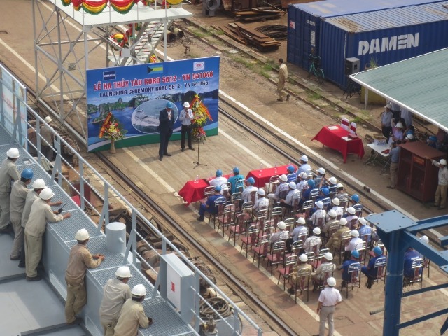 Ceremonia de botadura del “RoRo 5612” de Bahamas.