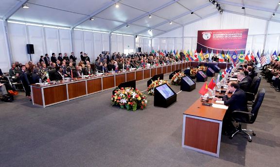 (defensa.com) El Presidente de Perú, Ollanta Humala Tasso, y el Ministro de Defensa, Pedro Cateriano Bellido inauguraron en Arequipa la XI Conferencia de Ministros de Defensa de las Américas (CMDA). En su discurso inaugural, Humala Tasso manifestó que “la mayor amenaza que hoy enfrentan los países son el narcotráfico y el cambio climático, por lo que insto a la cooperación con criterio social para consolidar la paz”. Además, dio a conocer que en diciembre se realizará en el Perú la Conferencia Mundial sobre Cambio Climático, invirtiéndose unos 300 millones de dólares a fin de que los países asuman el compromiso de mitigar el cambio climático y establecer el Fondo Verde. A su turno, el Ministro Cateriano expreso que “nuestro trabajo busca asegurar al continente como zona de paz, a través del diálogo y la concertación multilateral. La Declaración de Arequipa debe ser un documento consensuado para que esta Conferencia sirva como marco efectivo de un régimen de seguridad cooperativa en el continente”.