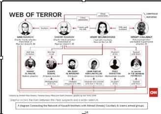 - 7, 8 y 9 de enero de 2015: El 7 de enero de 2015 Amedy Coulibaly, francés de 32 años de origen maliense, comenzó su actividad terrorista disparando con una pistola Tokarev a un corredor en Fontenay-aux-Roses (Paris). Los casquillos encontrados en el lugar coincidieron posteriormente con las trazas y vínculos balísticos de una de las armas utilizadas por Coulibaly en la toma de rehenes del supermercado kosher dos días después. El 8 de enero de 2015 Coulibaly asesina a una agente municipal mientras intervenía en un accidente de tráfico en el sur de Paris. El 9 de enero secuestró a los clientes de un supermercado kosher durante varias horas. A pesar de actuar en solitario los investigadores han encontrado vínculos de Coulibaly con el yihadismo. En diciembre de 2013 fue condenado a cinco años de prisión por intentar ayudar a escapar a Smaïn Aït-Belkacem, antiguo miembro del Grupo Islámico Armado (GIA) que atentó contra la estación de tren del Museo de Orsay en 1995. También Djamel Beghal, francés de origen argelino que en el año 2001 planeó un atentado contra la embajada norteamericana en París, actuó de mentor de Coulibaly y Chérif Kouachi mientras estos cumplían sus condenas en prisión. Hayat Boumeddiene, esposa de Coulibaly, mantenía lazos sostenidos en el tiempo con la esposa de Chérif Kouachi. Respecto a la reivindicación de sus acciones en una conversación telefónica con el canal de televisión BFMTV durante el secuestro, Colulibaly aseguró haber actuado a las órdenes del Estado Islámico y haberse coordinado con Chérif Kouachi, quien a su vez, en declaraciones al mismo medio, dijo haber sido enviado por al-Qaeda en la Península Arábiga (AQPA). Posteriormente se difundió un vídeo de más de siete minutos de duración titulado “Soldat du Califat” en el que Amedy Coulibaly, alias Abou Bassir Abdallah al-Ifrisi, reivindicaba sus acciones en nombre del Estado Islámico. Respecto al armamento utilizado durante su periplo terrorista junto al cuerpo abatido de Coulibaly se encontraron un fusil VZ 58 Compact de la marca CZ –con una cadencia de tiro de 600 balas por minuto– y dos pistolas Tokarev TT33. No obstante se tiene constancia, según los investigadores, que adquirió dos fusilesvde asalto VZ 58 y cuatro pistolas semiautomáticas Tokarev TT33. Sus tres acciones causaron la muerte a cinco personas e hirió de gravedad a diez más.