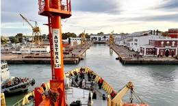 El buque oceanográfico ARA “Austral” (BHAU) en el Dique Nº 1 del Arsenal Naval Puerto Belgrano para dar inicio a su carenado. El buque permanecerá en seco por un lapso aproximado de noventa días. La Armada Argentina brinda este tipo de apoyo logístico al Consejo Nacional de Investigaciones...