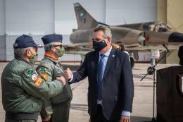 El ministro de Defensa, Agustín Rossi, acompañado por el jefe de la Fuerza Aérea brigadier Mayor Xavier Julián Isaac, encabezó en la IV Brigada Aérea, en El Plumerillo, en la provincia de Mendoza, el acto de conmemoración por el 39° aniversario del bautismo de fuego de la Fuerza Aérea Argentina,...