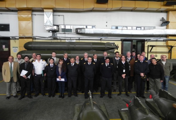 Finalizadas las exposiciones, los asistentes fueron recibidos por el jefe del Arsenal Naval Mar del Plata, Capitán de Navío Marcelo Flamini, en la visita que se realizó al Departamento Armas de dicho Arsenal. (Luis Piñeiro, corresponsal en Argentina)