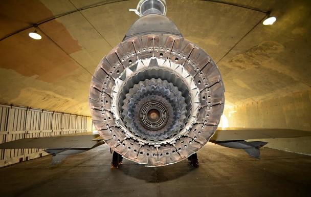 ·Dentro de un hangar acorazado una vista extraña de la turbina.(fotografía Horacio J.Clariá)