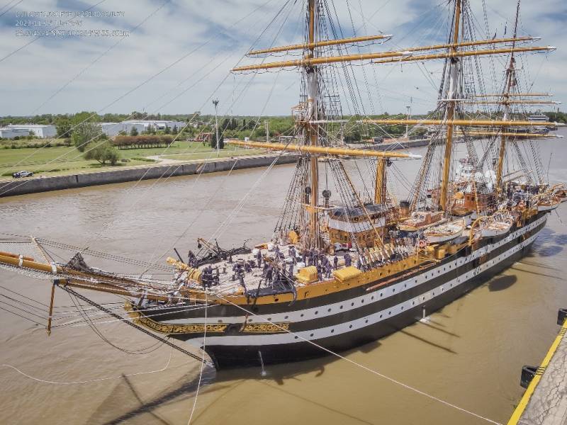 El “Américo Vespucio”, que partió de La Spezia en junio, está desarrollando una navegación planetaria que insumirá veinte meses de duración. Este buque escuela, construido en 1930 y con más de cien metros de eslora, tiene ciertas similitudes con la conocida Fragata ARA “Libertad” de la Armada Argentina, que fuera construida en el antiguo Astilleros y Fábricas Navales del Estado (AFNE), hoy Astillero Río Santiago.