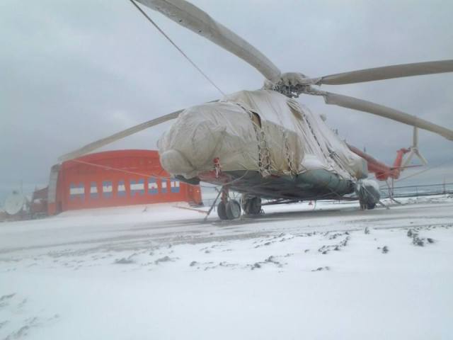 ·Recien llegados a la Antartida los tripulantes de los helicopteros de la FAA.