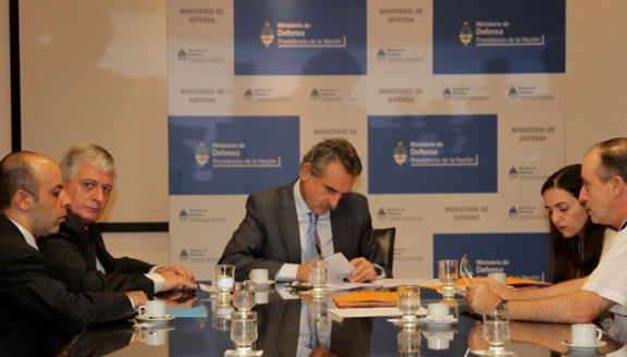 En la firma estuvieron presentes, el director general de adquisiciones de la dirección general Servicio Logístico de la Defensa, Comodoro de Marina Ariel Carlos Seghesso; el gerente del sector público de Leasing Nación, Mauro Rubio y el director de Nación leasing, Ricardo Fragueyro. (Luis Piñeiro, corresponsal en Argentina)