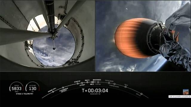 La primera etapa del cohete Falcon 9 que transportó al Saocom 1B al espacio se separó a los 2 minutos 31 segundos del despegue y fue recuperada en tierra para una próxima misión. El satélite Saocom 1-B se separó a los 14 minutos 20 segundos del módulo de carga del cohete, se estabilizó en su órbita y abrió sus paneles solares.