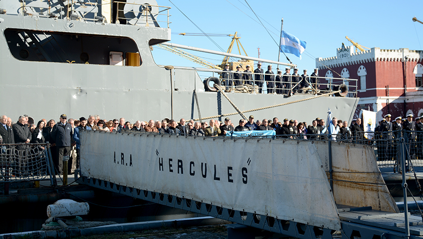 En la Dársena de la Base Naval Puerto Belgrano, se realizó la ceremonia de arrío del pabellón nacional en el Destructor Tipo 42 ARA “Hércules” de la Armada Argentina, que en estos momentos llevaba la designación de Transporte Rápido Multipropósito.