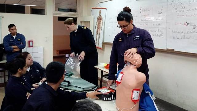 Durante la semana de capacitación intensiva se impartieron clases teóricas y prácticas en las instalaciones de la ESNP y a bordo del buque de instrucción pesquera ARA “Luisito”.La dotación, compuesta por 32 personas, recibió instrucción en Primeros Auxilios, a cargo de la Suboficial Primero Enfermera Claudia Onofrio; mientras que la capacitación en Lucha Contra Incendios y Control Averías fue dictada por Silvina Krawczyk y el Suboficial Segundo Maquinista Control Averías Iván López.