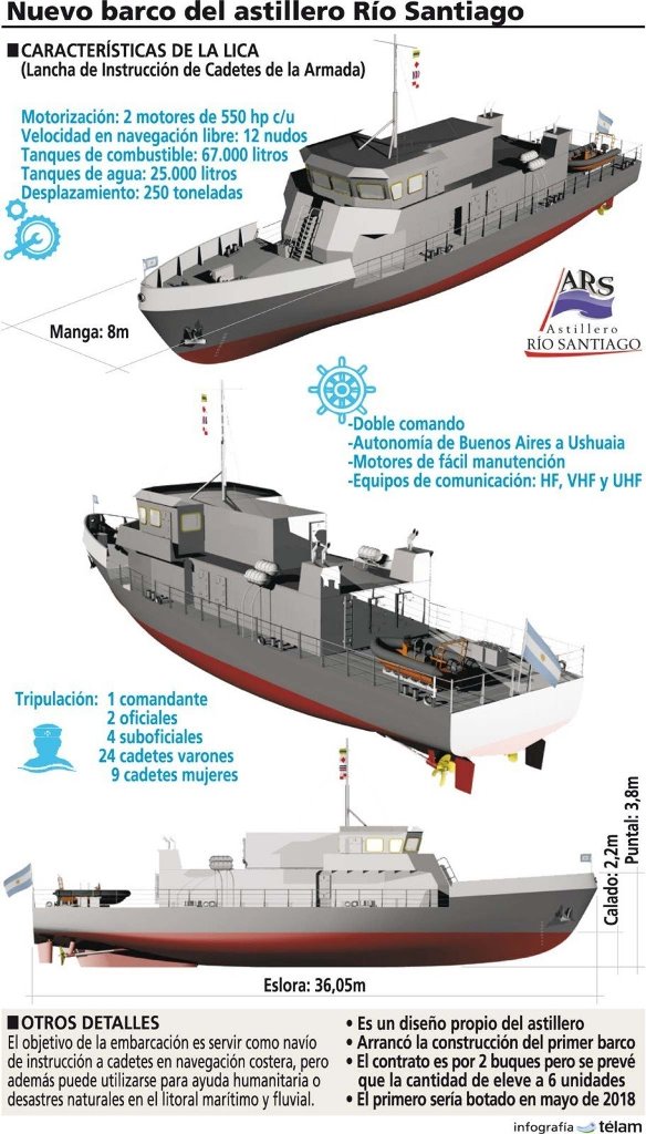 El Astillero Río Santiago finalizará la construcción de dos lanchas LICA, proyecto que comenzara en 2015 quedando paralizado después, que se utilizarán en la instrucción y adiestramiento de los cadetes de la Armada Argentina. Esta iniciativa colabora con el reequipamiento de las Fuerzas Armadas, a la vez que fomenta la industria para la defensa e impulsa el trabajo nacional.