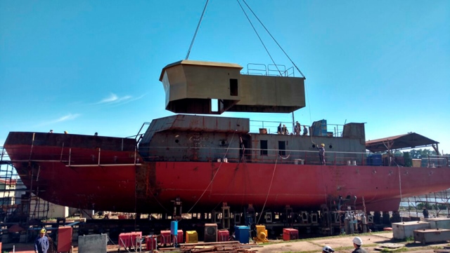 Con el posicionamiento del bloque de timonera cuya numeración estructural lleva el Ha2c, concluyo el montaje correspondiente a la primera Lancha de Instrucción de Cadetes (LICA), encargada por la Armada Argentina. El Astillero Rio Santiago, por medio de su gerencia técnica, volvió a diseñar íntegramente un navío para la defensa, después de muchos anos, al mismo tiempo que se informa que se está cumpliendo con los tiempos del contrato.