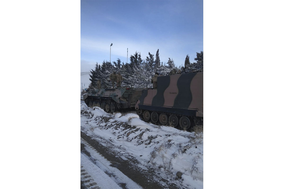 Por medio de sus vehículos de combate VCTM, M-113 y M-577, está evacuando personal de empresas petrolíferas en zonas aisladas, llevando alimentos y leña a pobladores en la estepa, además de colaborar con el rescate de pasajeros de medios de transporte que quedaron rodeados por la nieve en rutas y caminos.