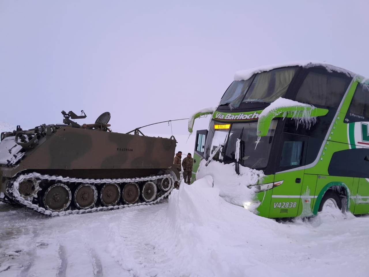 Debido a una gigantesca nevada que está afectando a buena parte de la Patagonia, el Ejército Argentino fue movilizada para ayudar a numerosos ciudadanos que quedaron varados en rutas, caminos y establecimientos en las vastas soledades patagónicas.