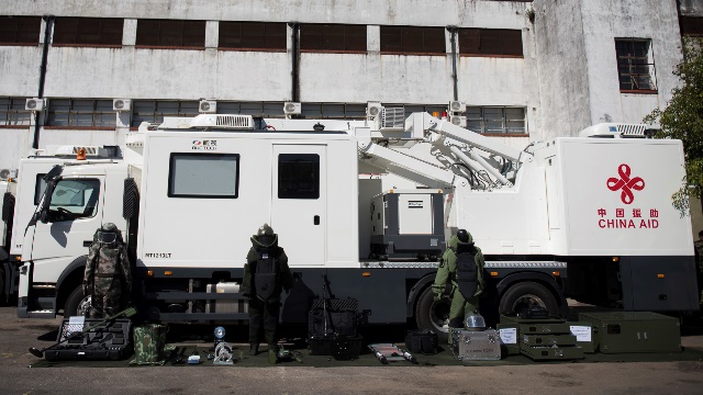 La Gendarmeria Nacional Argentina recibió asimismo equipo de procedencia china, en este casi camiones con elementos antidisturbios y Scanners de alta tecnología. El embajador de Pekin en Argentina, Yang Wanming junto a la ministra de seguridad nacional, Patricia Bullrich, encabezaron la ceremonia de entrega de estos nuevos elementos para las fuerzas de seguridad nacionales en vista de los importantes compromisos de seguridad que el país tomo con respecto a la reunión de lideres mundiales, que se llevara a cabo en pocos días. (Luis Piñeiro, corresponsal de Grupo Edefa en Argentina)