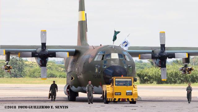 Plato fuerte del evento fue la presencia del mítico C-130 TC-68 portando bajo sus planos bombas Expal , como lo hiciera durante 1982 en que realizó misiones de exploración y bombardeo a gran distancia, junto con los hombres que volaron en estas arriesgadísimas misiones. Debemos indicar que esta aeronave se encontraba virtualmente abandonada desde hace años, y solo el esfuerzo de los técnicos de la Brigada lograron que este presentable para esta ocasión. La recuperación y modernización de esta máquina es posible, pero solo una decisión política hará que vuelva a volar. De mas esta comentar que en estas cinco décadas los Hercules volaron por todo el mundo, la Antártida y estuvieron operativos al máximo en dos contiendas, la Guerra contra la Subversión, donde el TC-62 fue destruido por un atentado con explosivos y en la Guerra de Malvinas, donde el TC.63 fue derribado por jets Sea Harriers durante una misión de exploración.