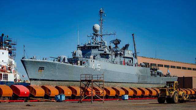 La corbeta multipropósito Clase Meko 140, P-45 ARA Robinson de la Armada argentina ingresó en las instalaciones de la planta industrial de Tandanor, para iniciar sus tareas de mantenimiento general. Este buque pertenece a la División de Corbetas de la Flota de Mar, con asiento en Puerto Belgrano.