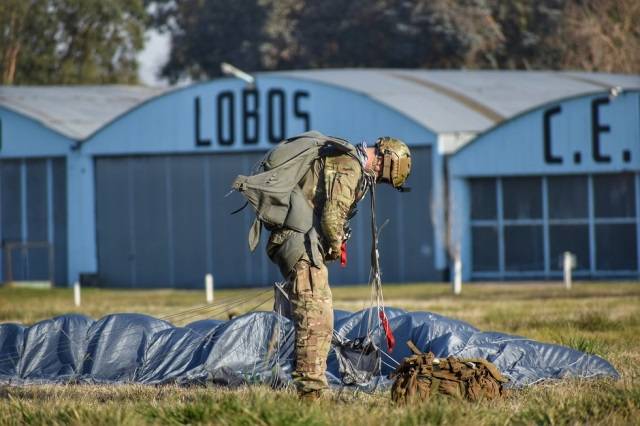 Un ejercicio operativo del Curso Avanzando de Paracaidismo Militar en el Aeroclub Fortín Lobos, en la provincia de Buenos Aires, reunió a integrantes de diferentes instituciones castrenses y de seguridad. La capacitación se realizó en el marco de un ejercicio operativo y contó con la participación del Sistema de Armas DHC-6 Twin Otter, que fue configurado en la versión con la compuerta Roll Up para poder llevar adelante el lanzamiento de personal y/o carga.