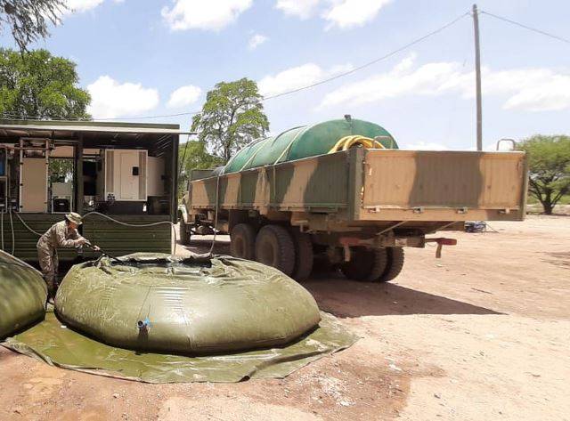 Una de las plantas empleadas tiene una capacidad de potabilización de 9.000 litros por hora; las demás son de 10.000 litros. Los militares entregan el agua a granel en los tanques de las viviendas o envasada en sachets de plástico. Hasta el momento, se ha abastecido con más de 500.000 litros de agua a más de 100 familias y al Hospital Zonal. Además, personal de Sanidad y Bromatología de la Fuerza se encuentra analizando el estado del agua de pozo disponible y su relación con potenciales problemas de salud.