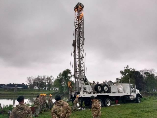También, el Ejército envió un camión Kenworth T800 con un equipo de perforación Gefco y dos camiones Paystar International 1500 con equipos de perforación Failing 500. Estos son aptos para perforaciones de “pozos profundos”, superiores a 150 metros.Tienen previsto estar desplegados 290 días. En ese tiempo repararán dos pozos, de 330 y 150 metros respectivamente; y perforarán 9 pozos nuevos. Se buscaron ubicaciones estratégicas de manera de poder abastecer desde los pozos a las comunidades afectadas. Cada pozo demorará aproximadamente 70 días y alcanzará entre 100 y 250 metros de profundidad.