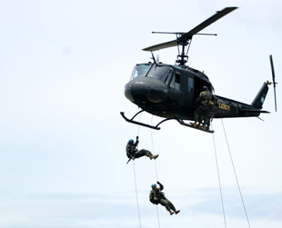 También se llevaron a cabo técnicas del descenso de fuerzas especiales (rapel) desde un helicóptero como apoyo cercano a las tropas que se encontraban en primera línea en el terreno, con una maniobra que conjugó una compañía de tiradores de la Infantería de Marina y un contraataque ejecutado por elementos mecanizados y blindados del Ejército Argentino que contaron con el apoyo de un helicóptero de ataque y el lanzamiento de paracaídas.
