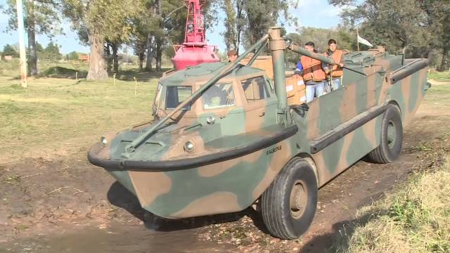 Foto: Los vehiculos anfibios llevan abastecimientos a los pobladores en una region inundada