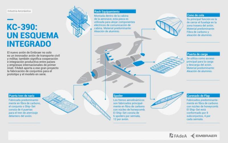 El conglomerado industrial argentino FAdeA concretó una nueva exportación de conjuntos (puerta de carga, cono de cola y rack de electrónica superior) para el avión Embraer KC-390, desarrollado y producido en Sao Jose dos Campos. Las piezas y partes fueron producidas por la empresa oficial argentina, en su planta de la provincia de Cordoba, utilizando herramientas de última generación y personal altamente capacitado.