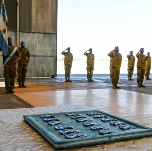 Asimismo, el jefe de la Unidad Aérea, vicecomodoro Nicolás De Natale, brindó palabras alusivas y expresó: “Nos reunimos aquí en esta situación excepcional, para entregar medallas a un grupo de hombres y mujeres que vinieron a servir por la paz en medio de una pandemia mundial sin precedentes”.